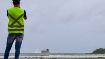 Começou neste domingo (22), em Balneário Camboriú, no litoral catarinense, o transporte da areia para obra de recuperação da faixa de areia da Praia Central da cidade, que passará dos atuais 25 metros, em média, para 70 metros. A areia nova começou a chegar na praia por volta das 11h30, na altura da Rua 3700, vinda da draga Galileo Galilei – um moderno e gigantesco navio operado por uma tripulação especializada de 28 homens a bordo.