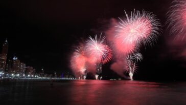 Com abraços de familiares, amigos e muita emoção, os fogos de Balneário Camboriú, subiram aos céus para marcar o maior reveillon da América Latina. Com a contagem, realizada pela roda gigante, 2025 entrou com um show de fogos de 15 minutos, alegrando os presentes, que acompanharam do alto de seus prédios ou da faixa de areia da Praia Central.